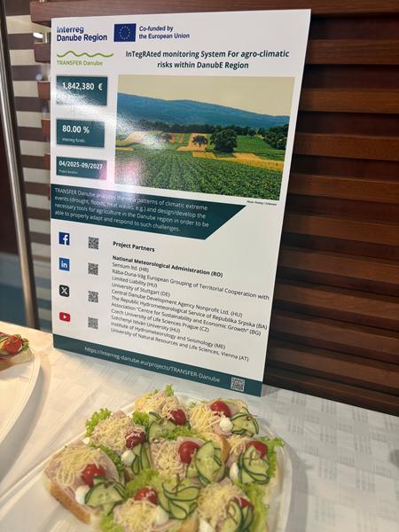 The opening conference of the TRANSFER Danube project ("InTegRAted moNitoring System For agro-climatic risks within DanubE Region") was held in Bucharest from September 16 to 18, 2025, as part of the Interreg Danube program, organized by the Romanian National Meteorological Service.
